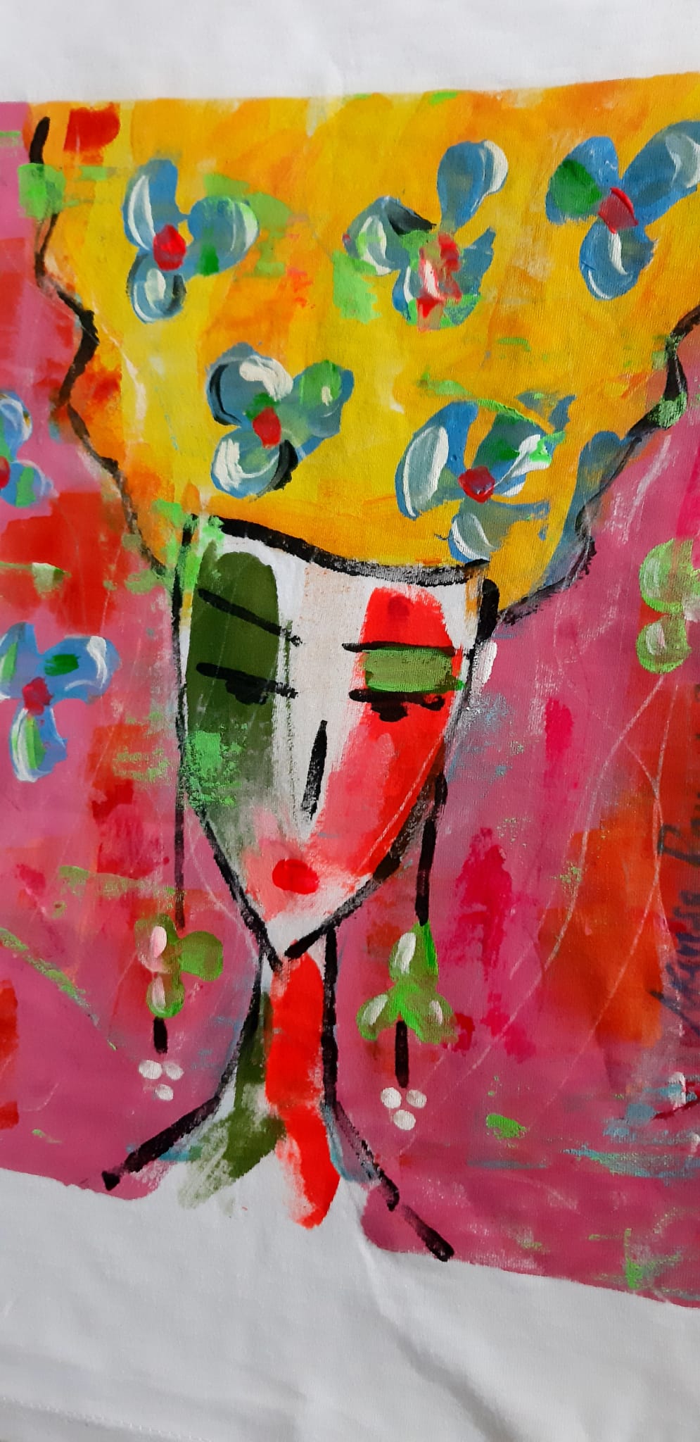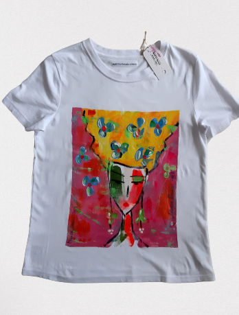 Camiseta pintada a mano única y original. Este modelo es recto y clasic. Una pequeña obra de arte en tu armario.